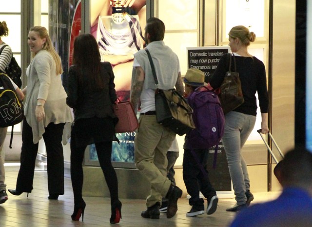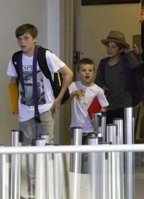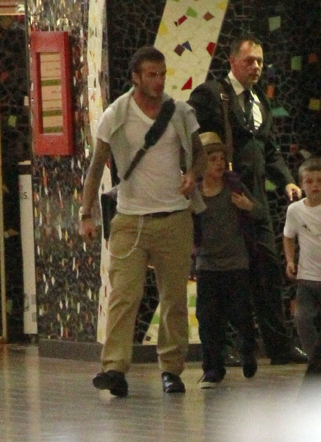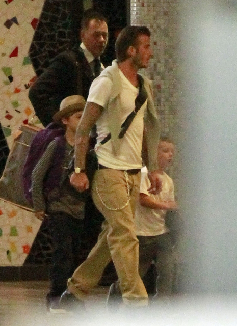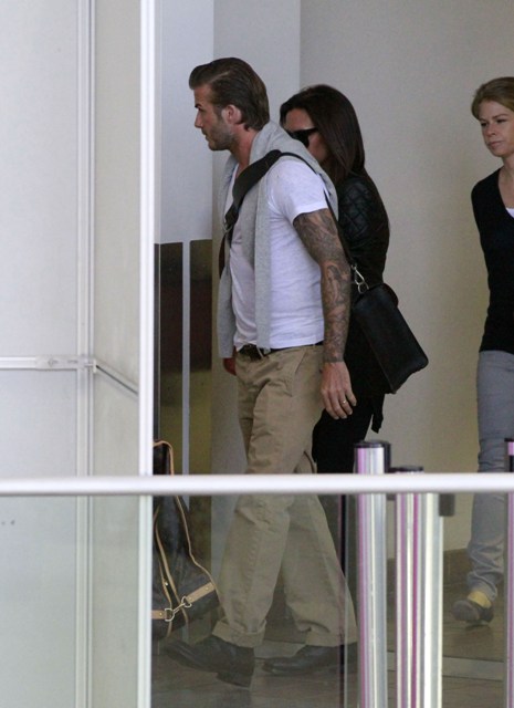 It’s too bad the paps didn’t or couldn’t take pictures of their luggage. I want to know what she’s bringing over. I want to know how much of it there is. Because Posh needs options. Which is what David will be doing tonight. Sitting on the couch in the hotel suite patiently analysing option after option as she comes out of the closet, frustrated with every extra inch, imagined or otherwise.