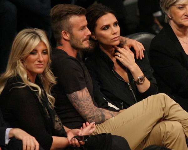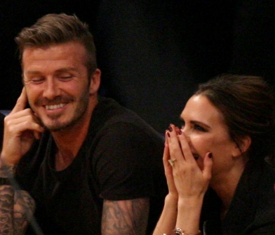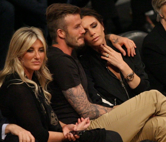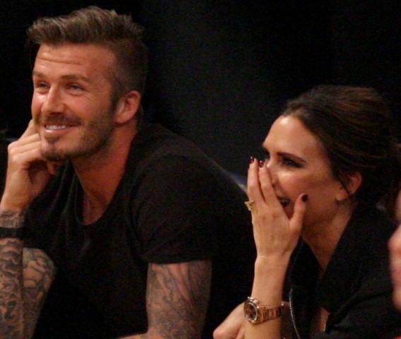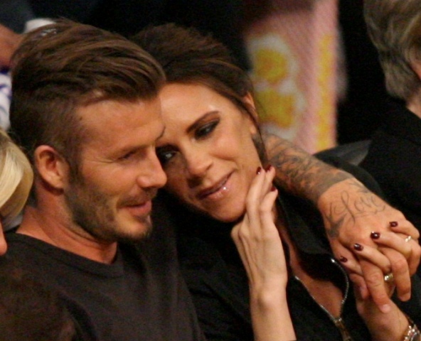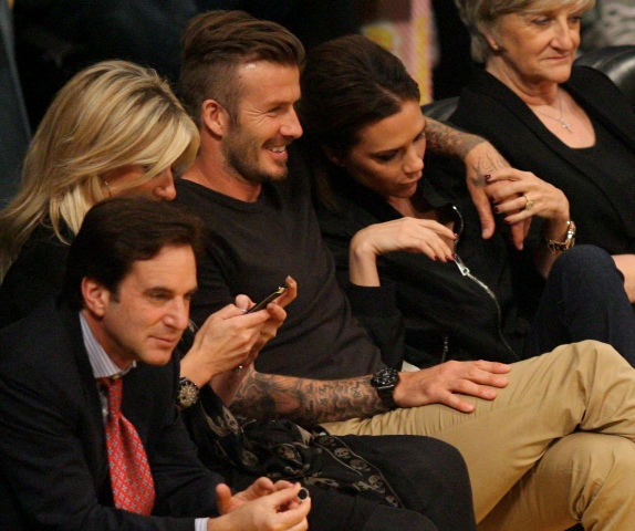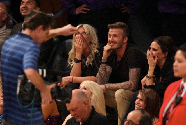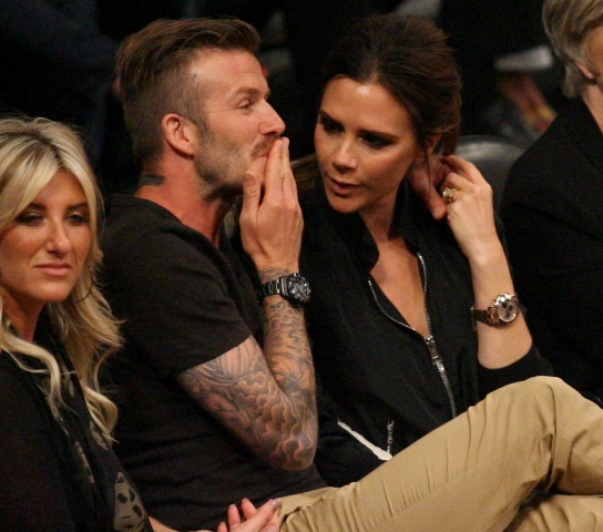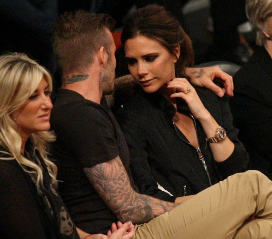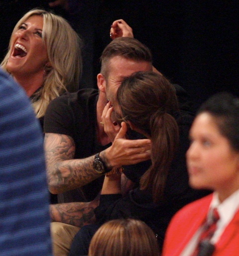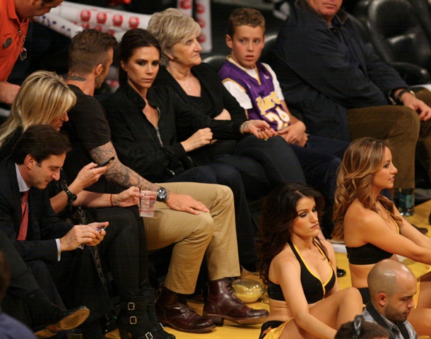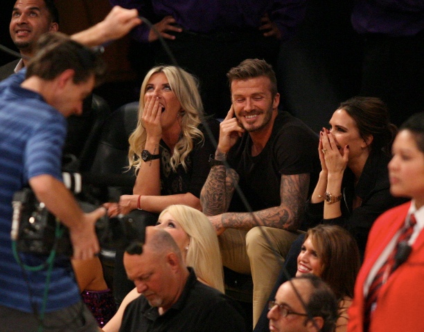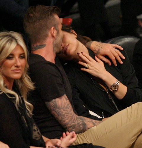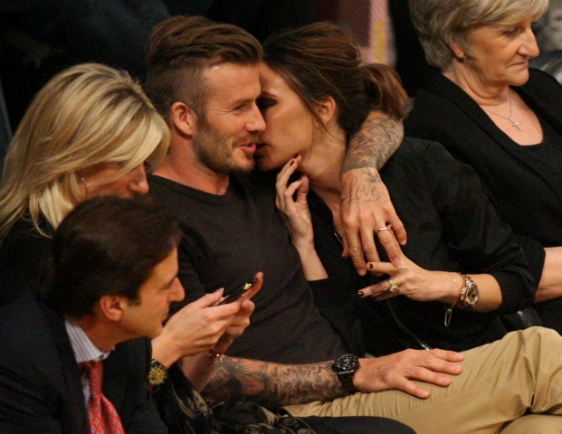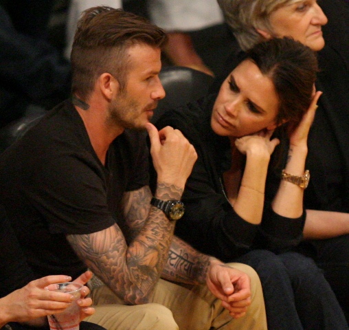Victoria and David Beckham went to the Lakers game last night and put on a very Beckham display: there was hand holding, there was neck rubbing, and there was my favourite move, her hand on his thigh. Very proprietary. Once in a while when I’m cold at a hockey game I’ll ask Jacek if he wants to play The Beckham which means that he puts his hand on my thigh to warm it up. You can do it in reverse too. His hand, obviously, has a lot more territory to cover than David.