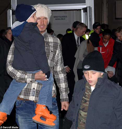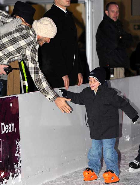 And then there’s Beckham the father. How hot are these pics? Becks and his boys skating in London, high fiving little Romeo as he manages a lap on his own, smiling proudly at his sons, and warming their hands when they get cold. Swooning.