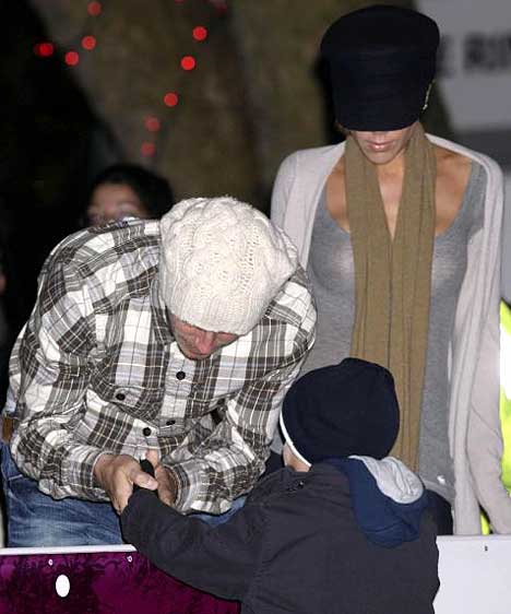 But as always, the most amusing is always his wife. Victoria dressed for the weather. Everyone else is in winter gear and there’s Posh freezing her tits off in practically nothing. She’s amazing.