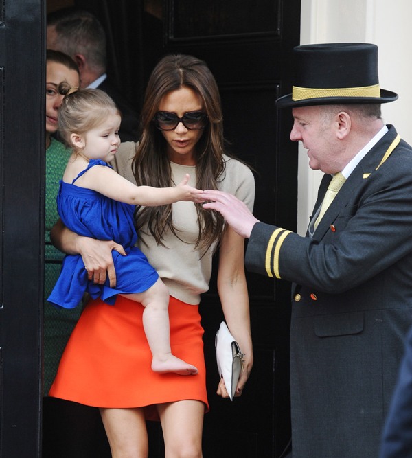 Here she is leaving a members’ club in London today with her mother and earlier in the day on a walk with her father in Notting Hill. She seems to like sticking her hand in people’s faces. This is very cute and I love her so much.