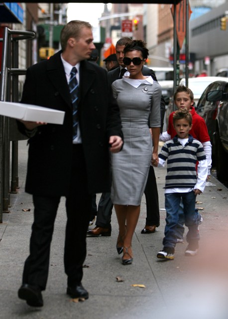 Here they are, Posh and Becks and their children, dressed to kill, naturally, as Victoria’s been saving this ensemble for the perfect occasion. These pictures will be everywhere.