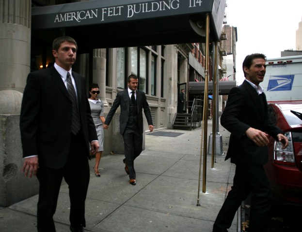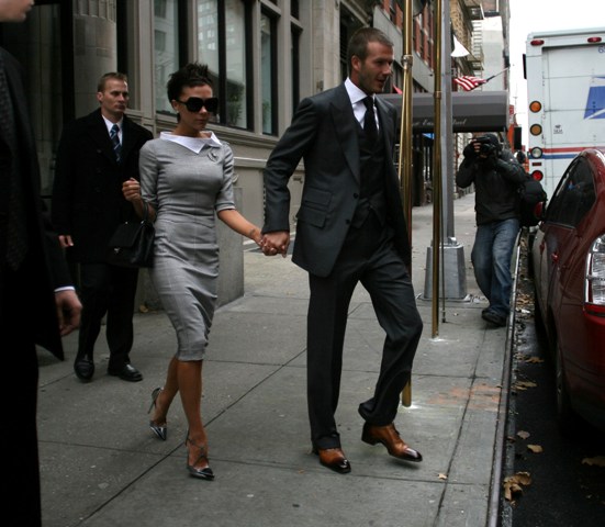 The Beckhams are in New York and they were photographed this afternoon leaving with Tom apparently en route to see Katie perform. So they’re still friends after all.