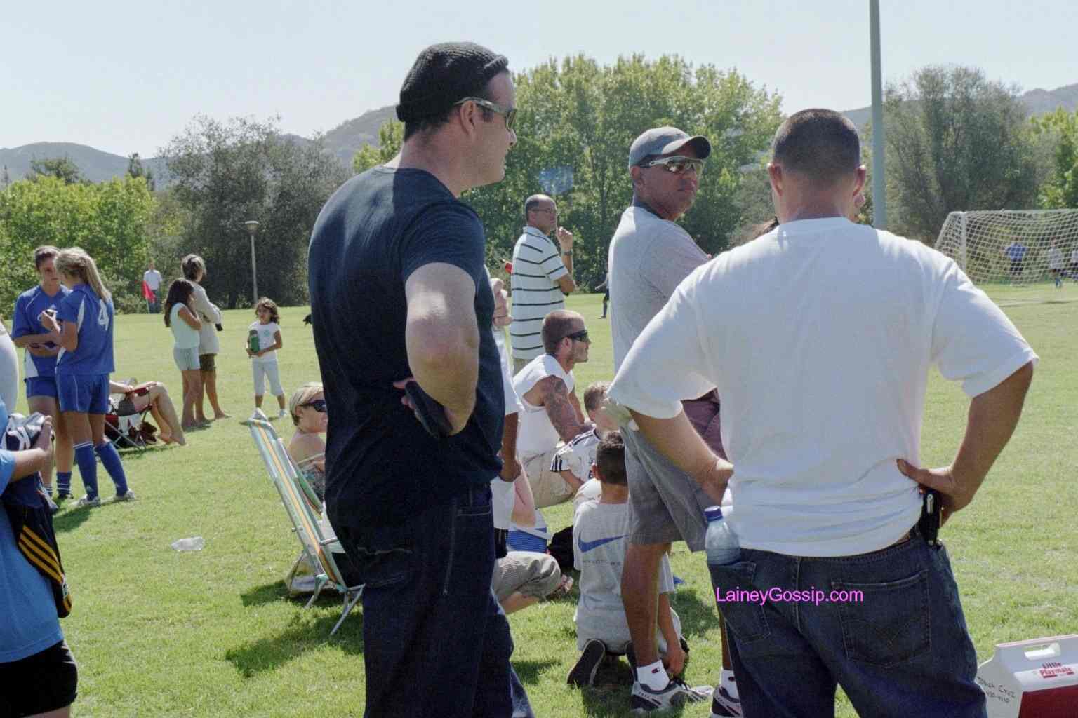 David is, as usual, the hotness. But look closely at Victoria sitting down on a lawn chair. Is it just me or does she look almost normal-sized? The arms, the midsection… no wonder the photographers are missing. Posh actually takes a day off!!! Posh fits in with the MiniVan Majority!