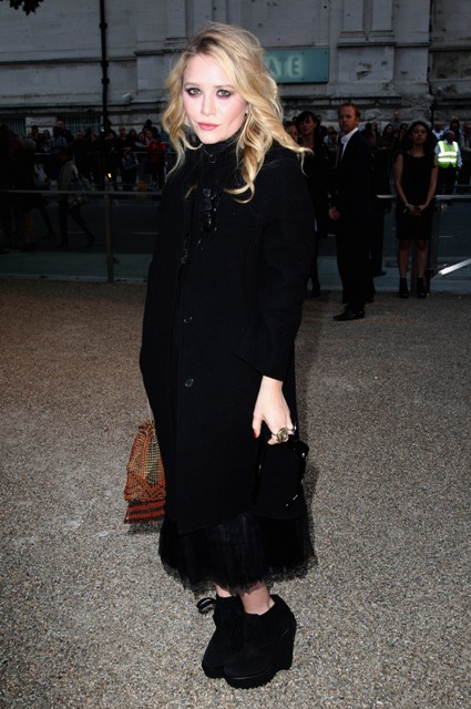 Also at the Burberry party – an increasingly slender Victoria Beckham who starved extra hard to get ready for London Fashion Week and Mary-Kate Olsen and the mystery of her neck. She doesn’t seem to be too keen on showing it lately. Necks don’t go with prunes?