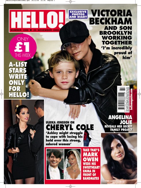 It’s like her boys are the Princes William and Harry and she’s grooming them for a life of public service. Here’s Victoria Beckham on the cover of the new Hello Magazine with son Brooklyn who has now become one of Save the Children’s youngest “celebrity advocates”.