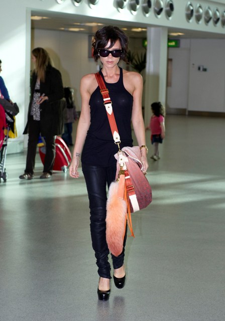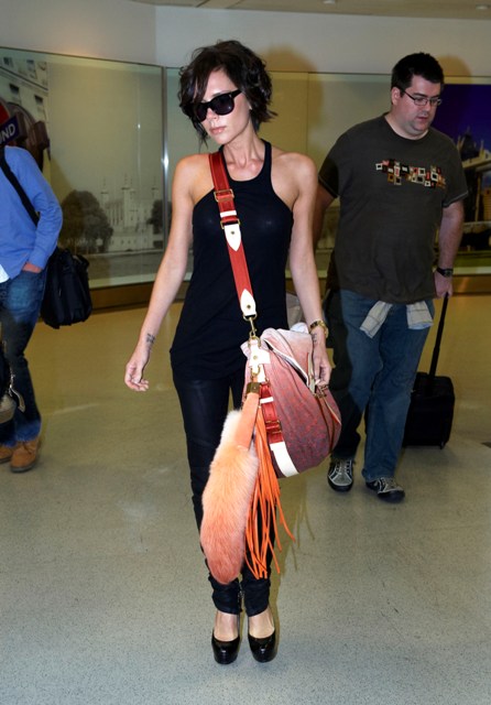 Today she was spotted at Heathrow after curling her hair on the flight. Also Mrs Beckham wants you to know that she already has her hands on the Louis Vuitton foxtail messenger months before us.