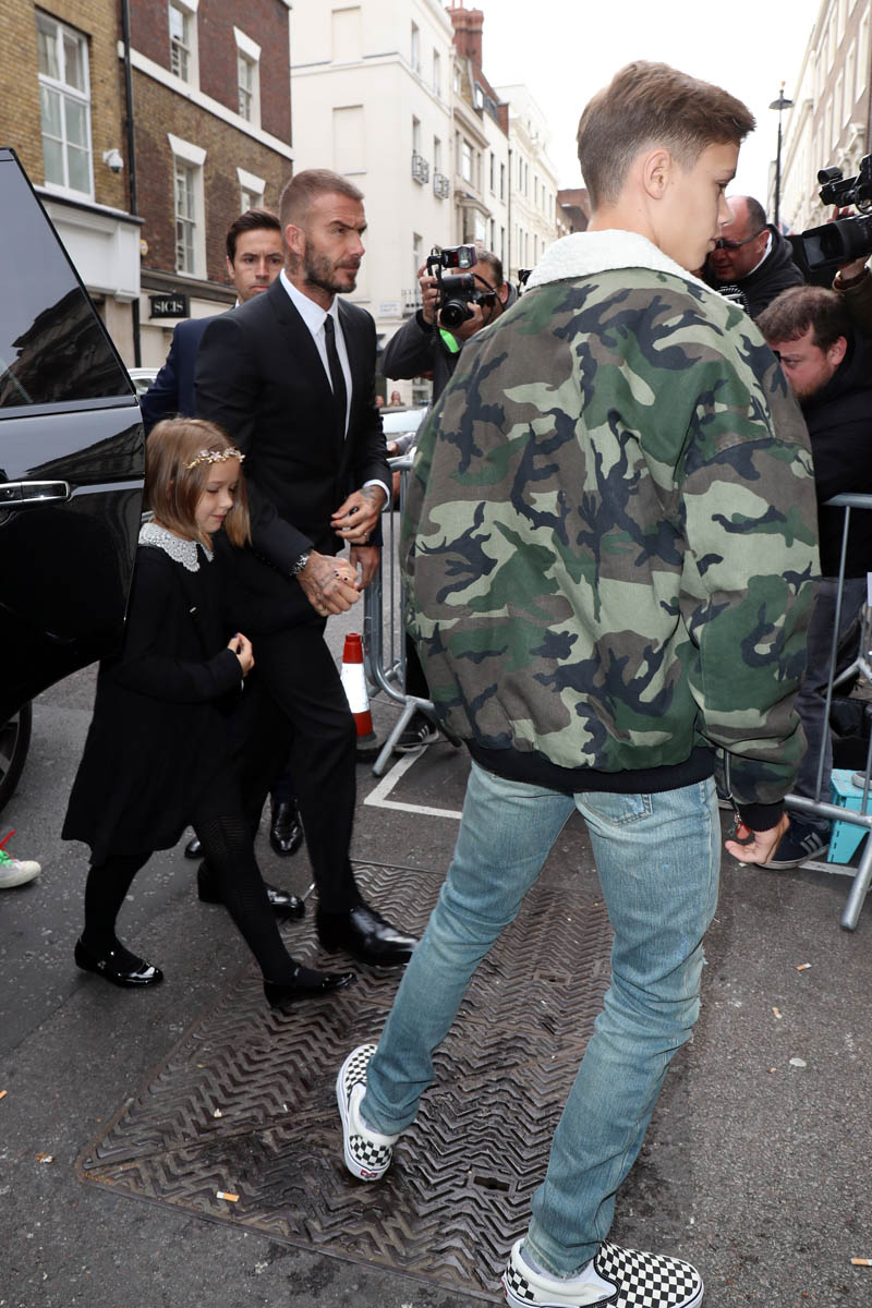 Victoria Beckham presented her first collection at London Fashion Week yesterday to celebrate the 10th anniversary of her label. The collection was well-received by critics. And she also had the full support of her family. All four Beckham children were sat front row at the show alongside David Beckham and at the end of the presentation, Victoria came out to greet and kiss them – David included.