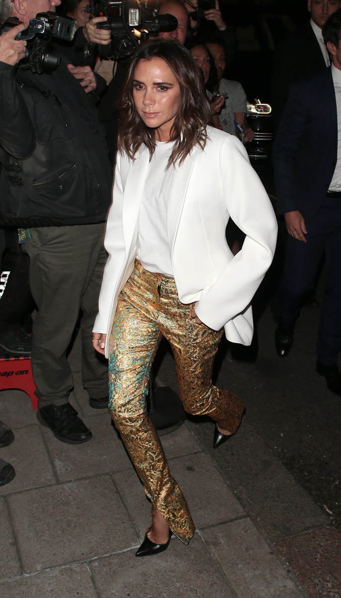 As you can see in that video, after the dancing part, Edward Enninful, of British Vogue, comes up to hug her. It’s evidence of the British fashion industry’s support of her. Which, obviously, was clear given she’s been profiled in British Vogue this month with a cover feature….even though, as you know, on the other side of that, the British tabloids have been trying to conjure the failure of her marriage and her business for the duration of both. How long before another round of Beckham Breaking is upon us?