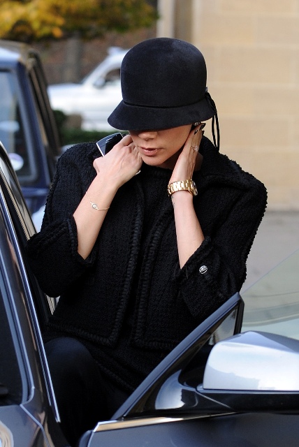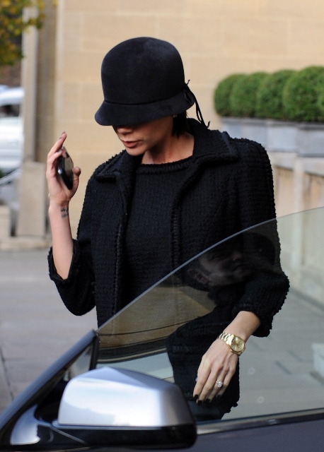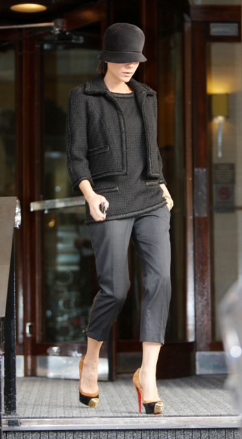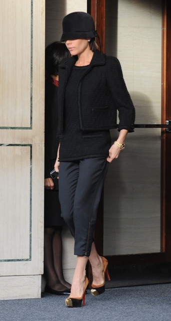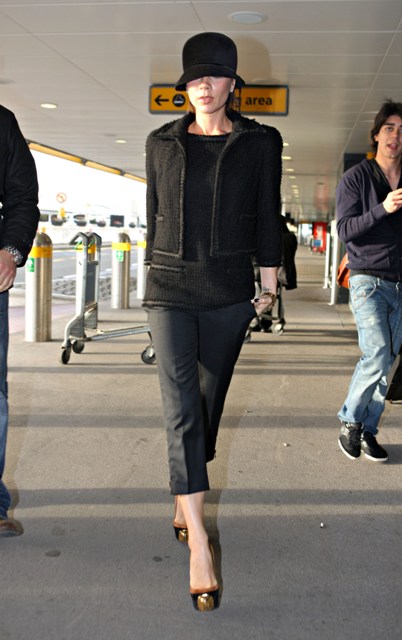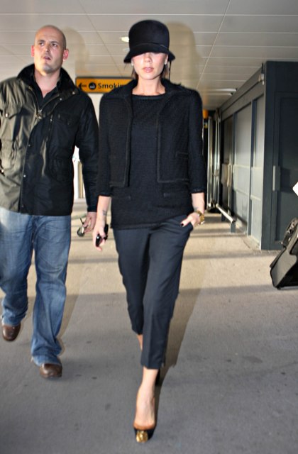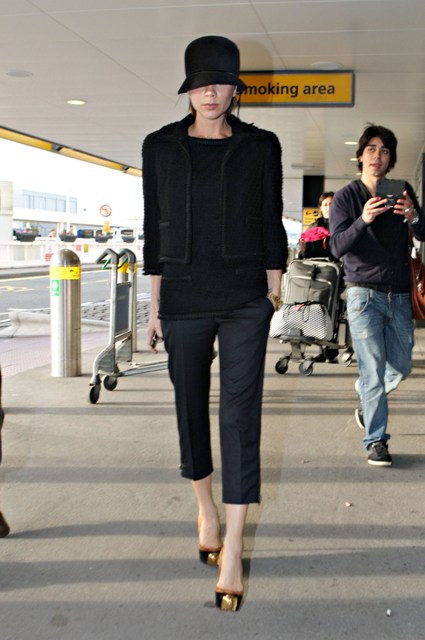 Here’s Victoria in London today, Heathrow is her catwalk.