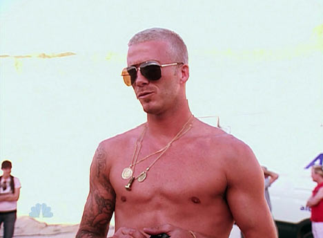 But still… if she still doesn’t do it for you, there is still her husband. Right off the top of the show, David in the desert, shirt off, pants hung low, blonde and beautiful and lean and unf*ckingbelievably quivering, wrapped around his wife in a variety of affectionate poses. That alone made the hour worthwhile.