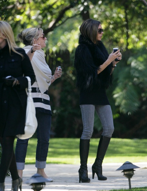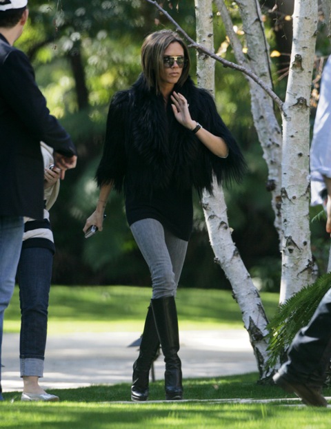 And this is why I love Victoria Beckham. Touching down at the weekend aboard a British Airways flight, prompting a pappy clusterf*ck at LAX which is quite likely exactly what she was after. I mean, why else would Posh forgo the private jet? You know she doesn’t love the environment, you know she’d rather sit in camel coloured leather seats without having to suffer the indignity of SHARING flight attendants with other passengers, and yet here she is, hopping off a commercial liner as a small village of photographers gathers on the welcome mat, soaking in every flash, the splashiest of arrivals, proving once and for all that… Posh Spice was born for Los Angeles. And Los Angeles Posh went househunting in LA – in a fur coat taking photos with her PDA. Daily Posh in Hollywood – admit it…you love it. Source