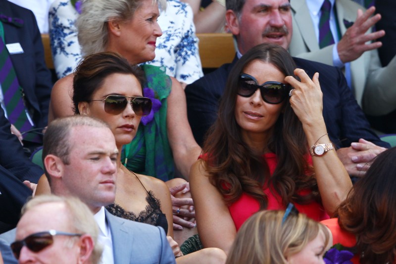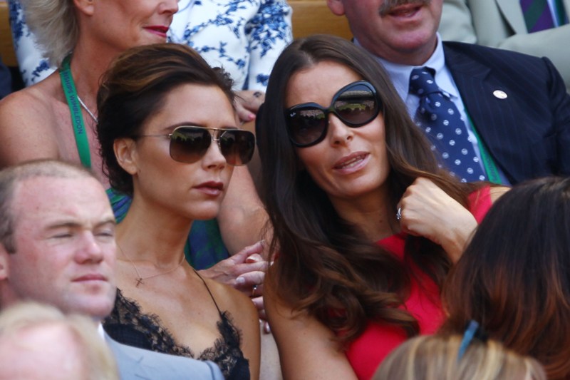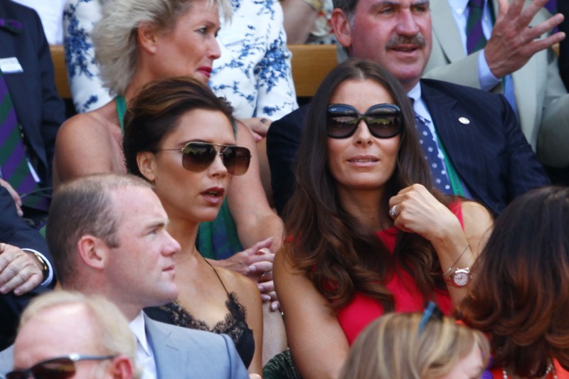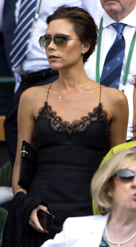 Victoria wore Louis Vuitton to Wimbledon yesterday to watch the men’s final. Andy Murray’s girlfriend wore Victoria Beckham. Strategic move? Let the client wear her designs instead? You know, Posh has worked so hard the last few years to kill the chav that swathed her for so many years. She downsized her chest. She stopped wearing daisy dukes. She goes easier on the hair extensions now. But in spite of all that, it’s like, even when she doesn’t have a French manicure, I still imagine her with one, you know?