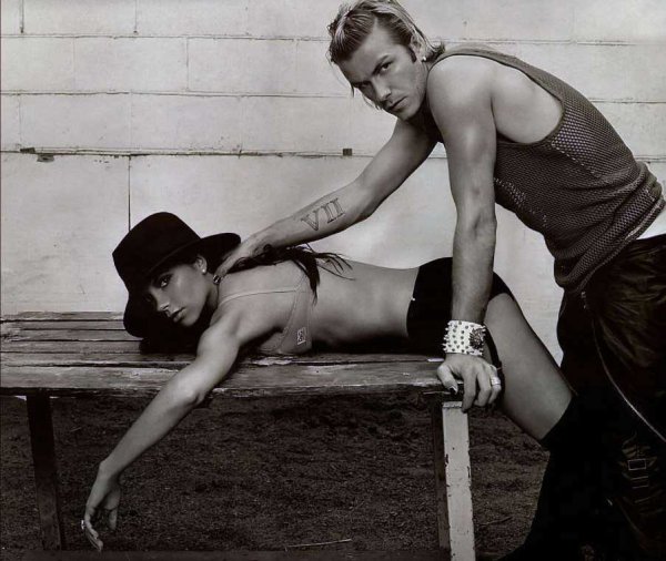 His and her fragrances and a new sexy ad campaign to launch the products. Too bad they missed the mark, non? David looks fine if not a little constipated and then there’s the normally impeccable Victoria – frightening at best. First of all, that ain’t her ass. Second – what the f&CK is up with the hair??? Is it crimped? It is even washed? And third – was this a shoestring budget? Are we barely holding our designer sh*t together here? Because ANY one of their weird S&M Vogue photos would have been an improvement on this…here, I’ll give you a few examples. See what I mean? Trust me, I don’t take pleasure in slagging my Beckhams, I don’t find this amusing at all. But not even I can resist the urge to scream it at the top of the my lungs: pure CHAV for life! Fragrance photo from https://www.thefashionspot.com/