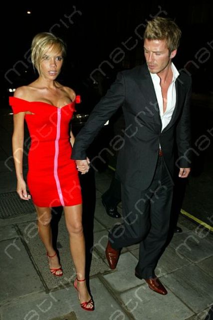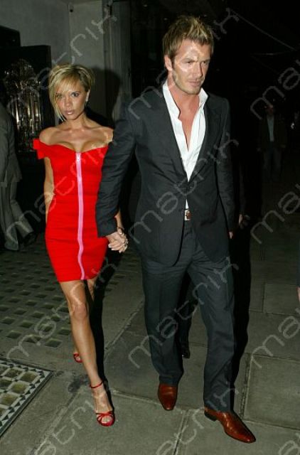 Out for dinner the other night – Becks is the hotness, as usual, but check out the Posh. Love the hair, LOVE IT! Hate the dress, hate the bridesmaid strappy heels, concrete tits on full display, and ummm, she’s not wearing hose… so… is that a Spanx line? I’ve circled attached.