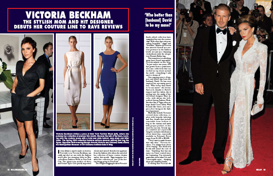 Two of Victoria’s items are showcased in this week’s issue of Hello Canada which reports that Posh’s vision is receiving “rave” reviews.