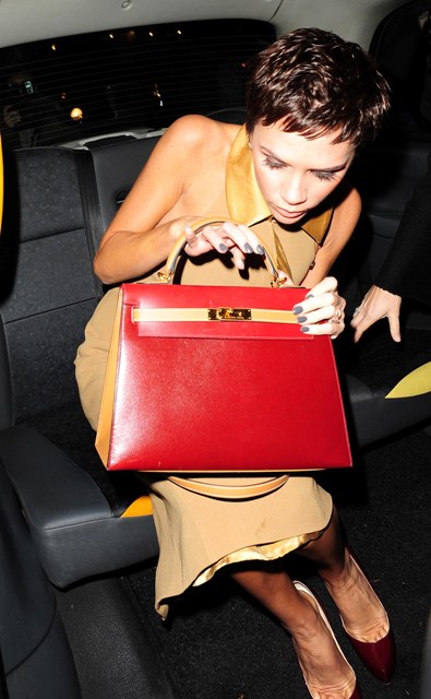 Victoria Beckham was in London last night out for dinner with D&G. At the end of the evening, the alleged style icon went home in a black cab. Poor thing must have cried all the way home, exposing her Birkin to the riffraff like that.