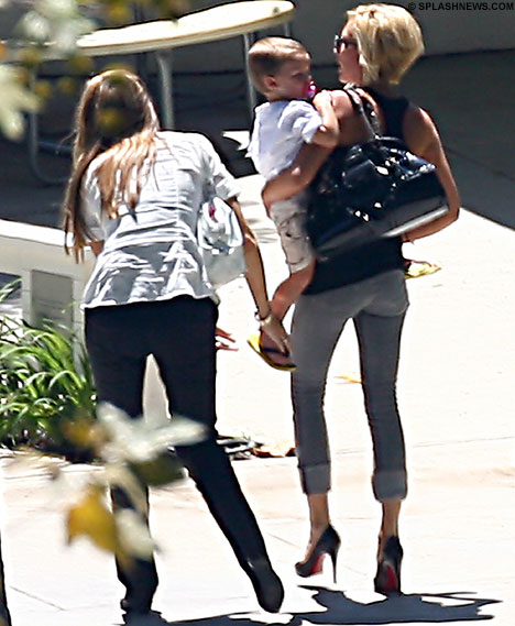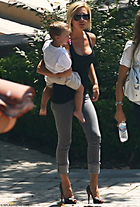 Victoria Beckham dropping Cruz off for day camp in – what else? – sky high stilettos. Apparently she can’t walk in flats anymore. No…seriously.