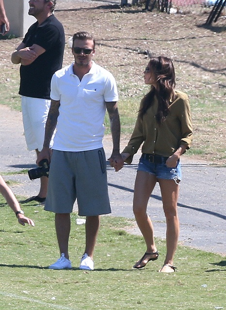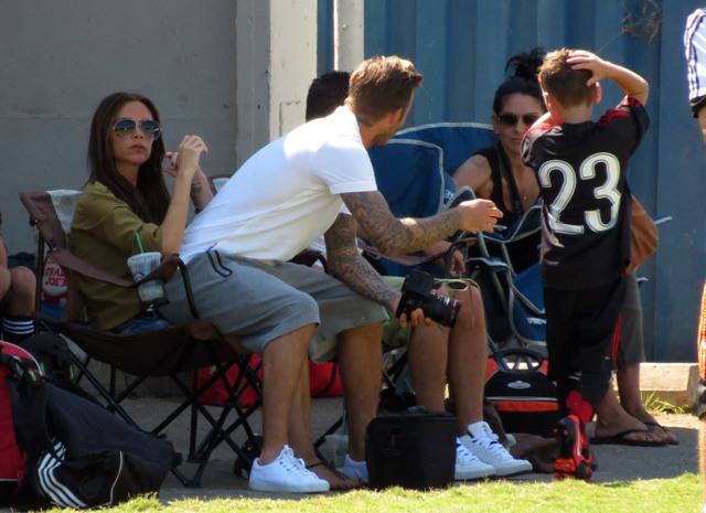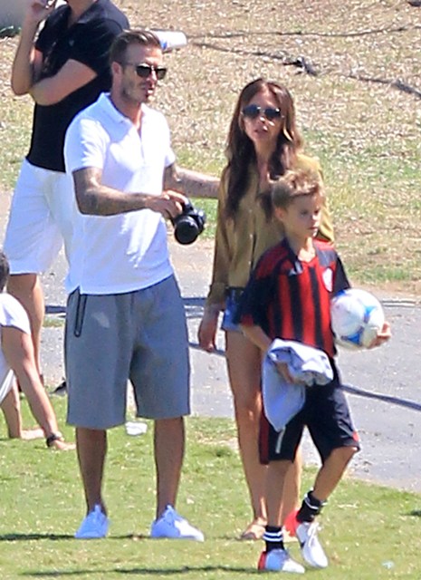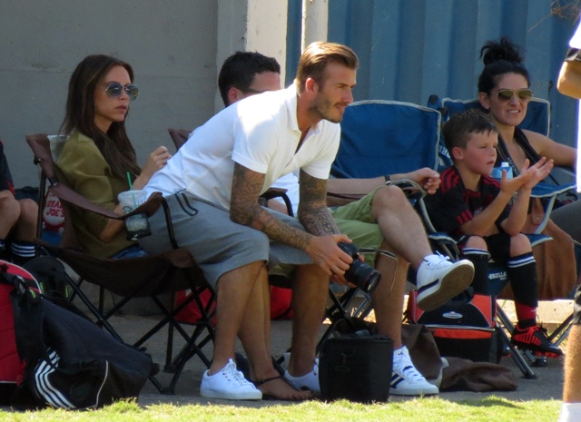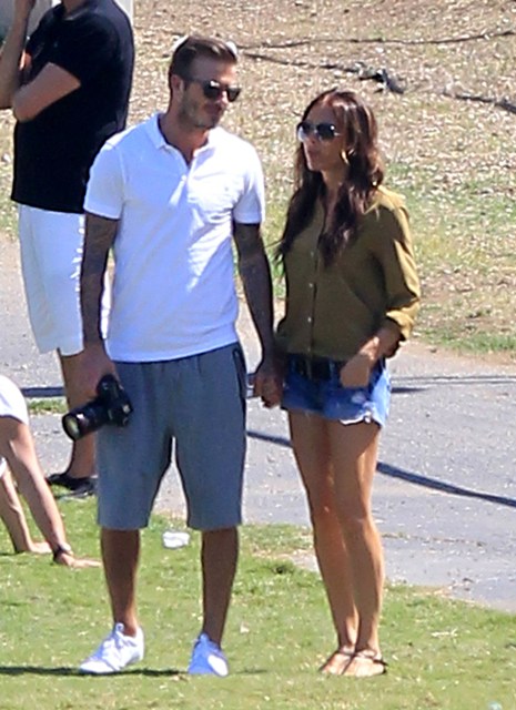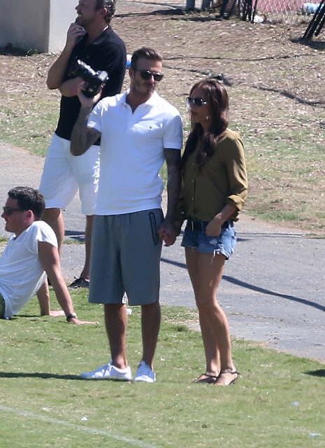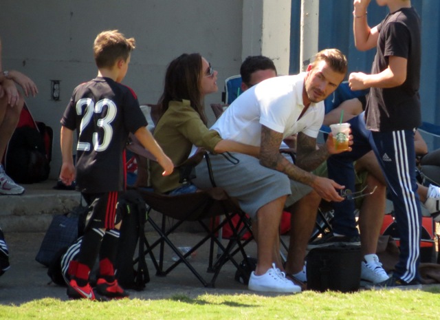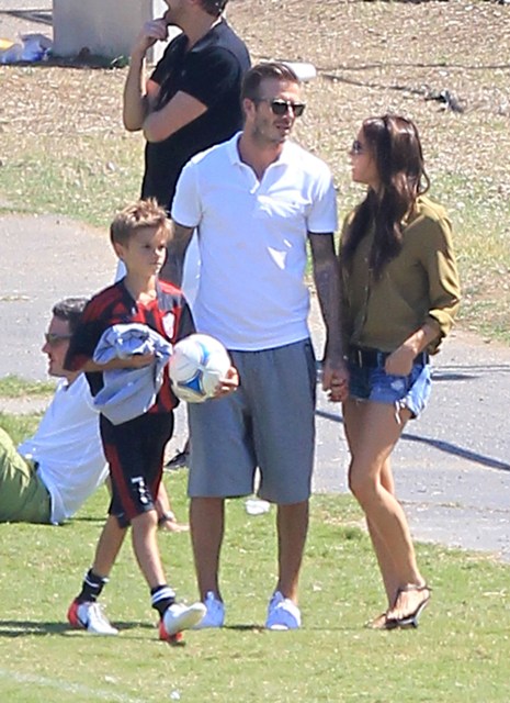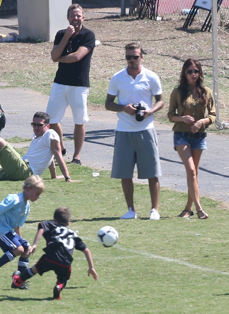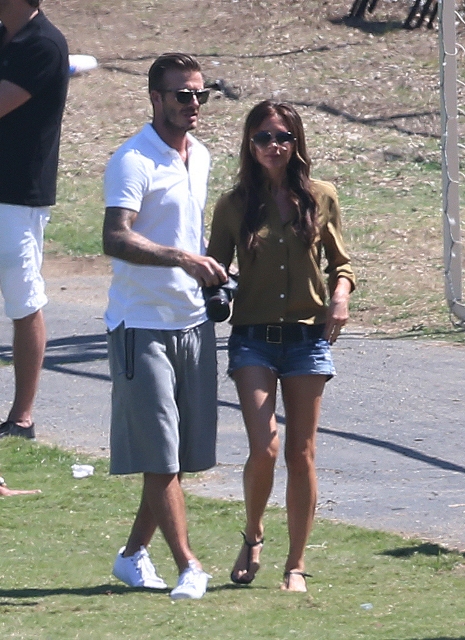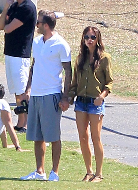 I’ve been enjoying this for several minutes -- seeing Victoria Beckham in cut off shorts and flats at her kids’ soccer game yesterday. It is not, as you know, the way she likes to be seen and it’s really too bad because it’s the way I like her to be seen, at least more often.
