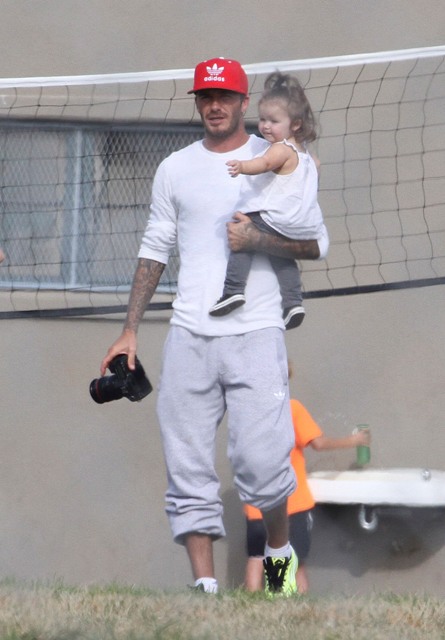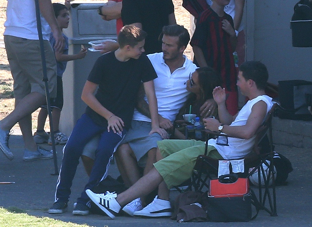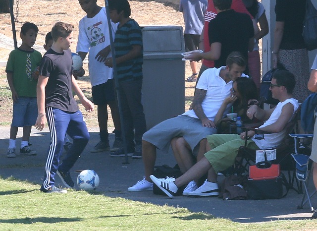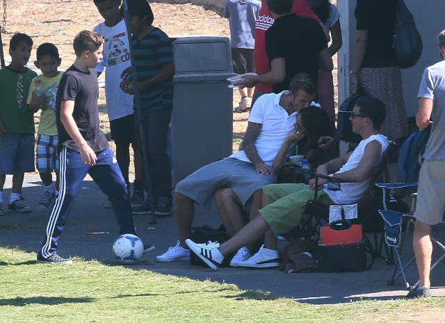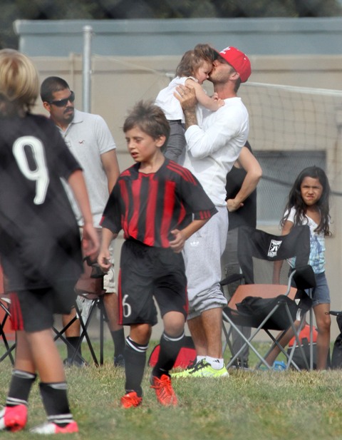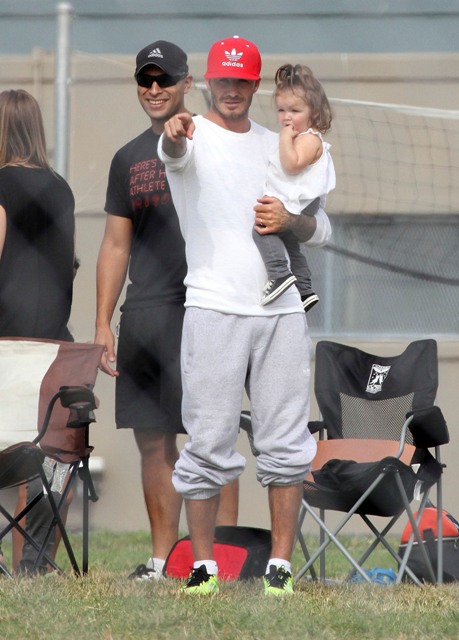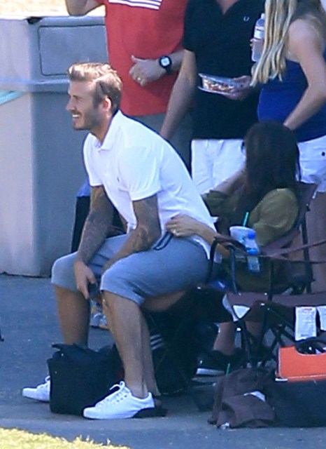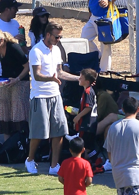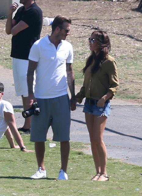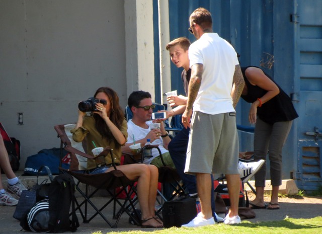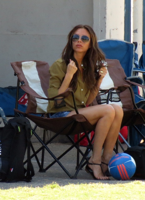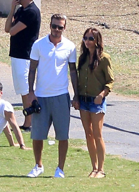 I’ve been enjoying this for several minutes -- seeing Victoria Beckham in cut off shorts and flats at her kids’ soccer game yesterday. It is not, as you know, the way she likes to be seen and it’s really too bad because it’s the way I like her to be seen, at least more often.