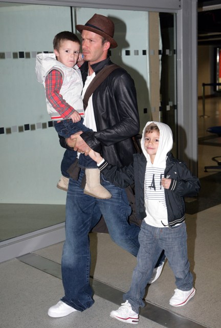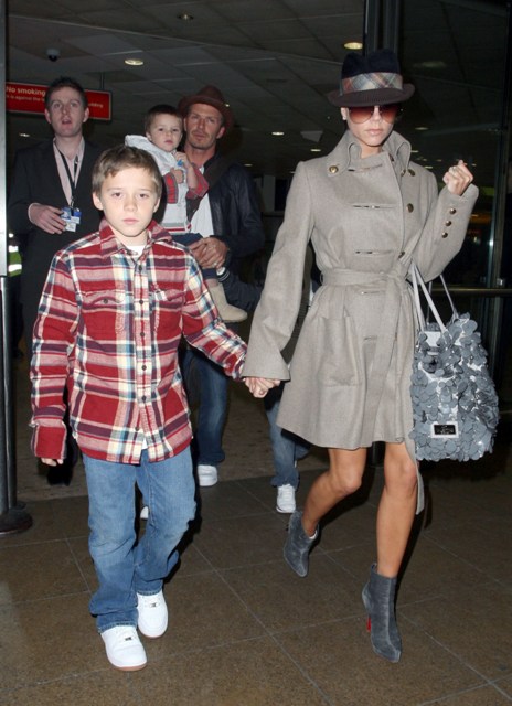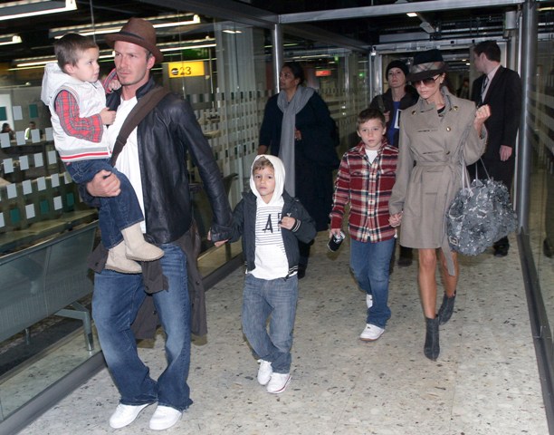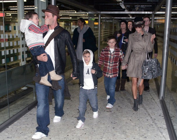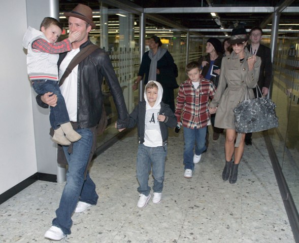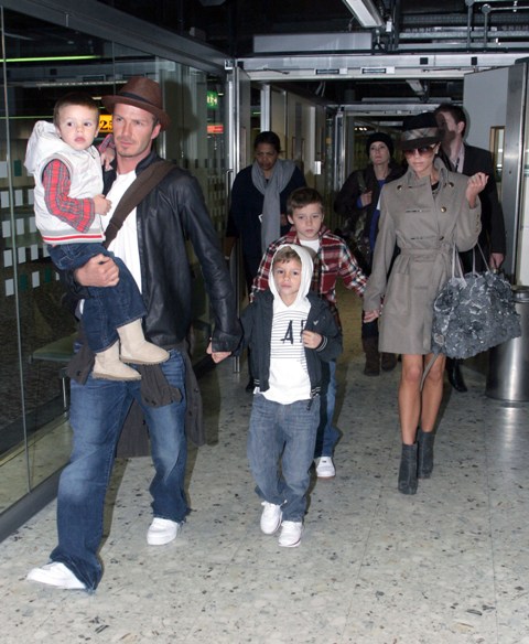 Here are the Beckhams with their 3 boys arriving at Heathrow earlier this week.