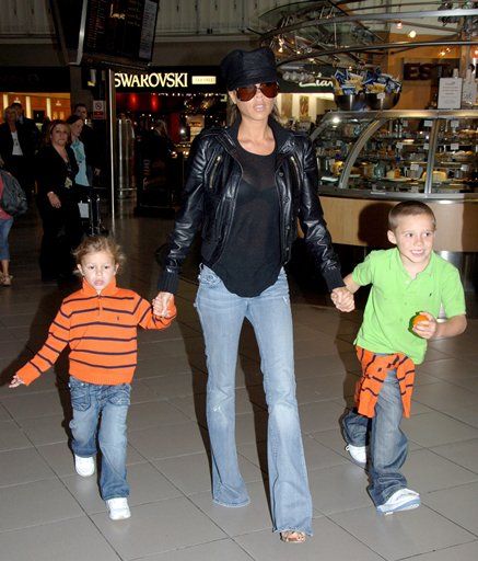 UK tabloids are reporting that Simon Fuller, the man behind the Spice, is working on a possible telly deal for my Posh, something about fashion, not quite as light as a reality tv show but a vehicle to showcase her sense of humour. And I know you think I"m blind to her chav but I’m telling you, she is much more amusing when she"s animated, when she"s not a torpedo titted pouting skeleton staring at you from a pappy lens. If you’ve seen Full Length & Fabulous, you probably have a small sense of what I mean. And if you want more of where that came from, you should definitely YouTube the Real Beckhams, chronicling their move to Spain, BEFORE the infamous Loos affair (Rebecca actually appears in one of the shots), where you get a glimpse of how they live - sort of - and how frickin" hilarious she is. My favourite though is a rarely seen documentary called Being Victoria Beckham, filmed pre-Romeo in support of her book and her album which dropped at the same time. There are of course your requisite eye roll moments - like when she insists she eats and isn"t anorexic or when she swags her way around TopShop - but overall, she"s pretty candid, discussing her disappointment with Geri, jealously ripping on Kylie"s Out of My Head, and - classic classic classic! - when she calls Jordan VILE after Jordan called her irresponsible for putting on a fake nose ring at a concert, criticising Vicky as poor role model to young girls by being an advocate for piercings - this from a woman who has purchased a set of boobs requiring a G CUP BRA!!! Other highlights include "chubby" shots of her at ballet and cute couch cuddles with her husband during which they tease each other about haircuts and Angelina Jolie. Seriously, it"s adorable and if you"re already a mild fan, you will love it. If however you can"t stand her, it will only add to your hate. Which just means you HAVE to see it. She’s endlessly entertaining, she’s a funny bitch with the best, and if you ask me, the Victoria Beckham Show is a fabulous idea. Check out La Posh returning to Madrid today with the boys after a boozy night out with the girls, putting all those premature Spanish Beckham rumours to rest…for now. Is just me or does she have a pants problem??? Just an inch…maybe an inch a half? Wouldn’t that be an improvement? Photos from Gossip Rocks