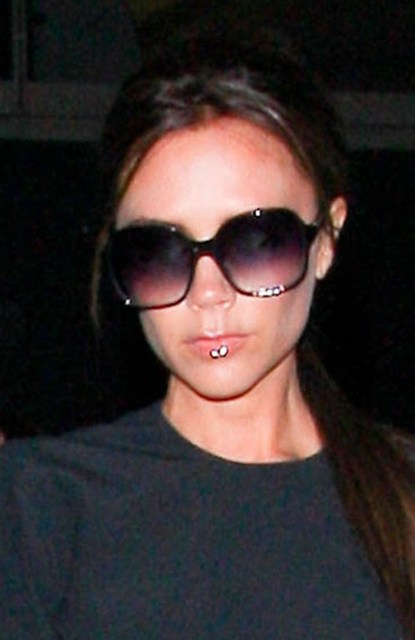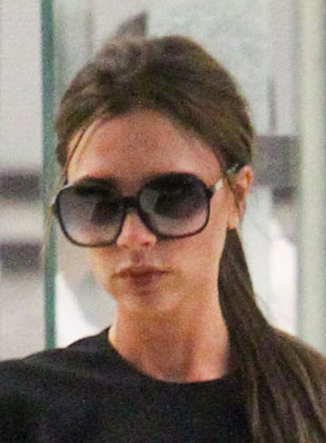 Anyway, this is Victoria Beckham rushing back to Los Angeles immediately following her appearance with the other Spices in London yesterday for the launch of Viva Forever. You remember, don’t you? The other four girls put their arms around each other and she stood off the side so as to properly position her hip cock pose. Click here for a refresher.