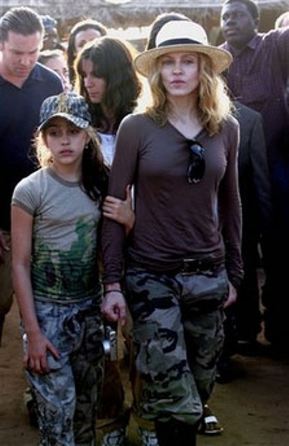 Madonna is in Malawi making the world a better place – fantastic. But Check out mom and Lola in matching fatigues – total gorgessity, non? Man I feel old. She’s 10 already – a decade of Madonna the Mother. In another decade, she’ll be dating… so can we play Dating Celebrity Babies?