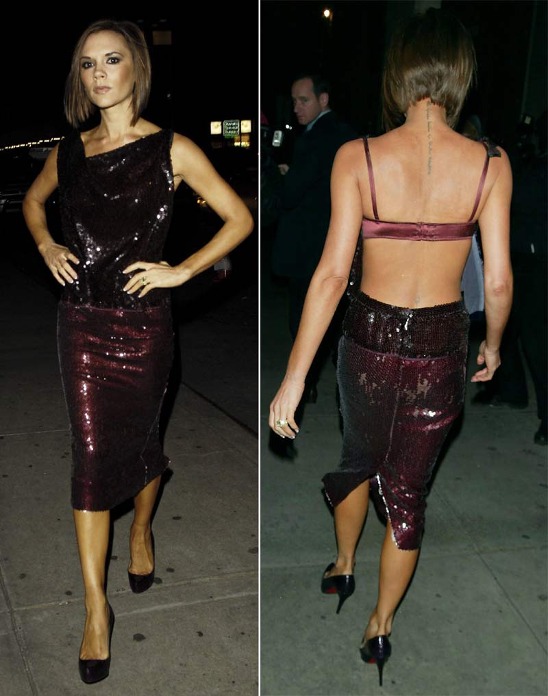 So here’s Posh working her pose at the Marc Jacobs show to close New York Fashion Week on Friday wearing a sequined open back in wine with a pair of Louboutins shaded matching merlot. MUST have them for the Oscars! Needless to say, she totally owned the carpet. And as you can see from the smug ass expression on her pug ass little nose, she was pretty pleased with her. On the other hand, as you can see the tight ass clench on Marc’s tight ass little face, he wasn’t pleased with her at all.