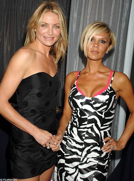 Making a splash at MTV and new friends as well…here’s Posh with Cam sharing footwear. The look on her face kills me – how she’s clutching Cam’s hand, how badly she wants to fit in, so desperate I can smell it.