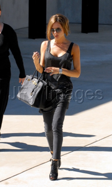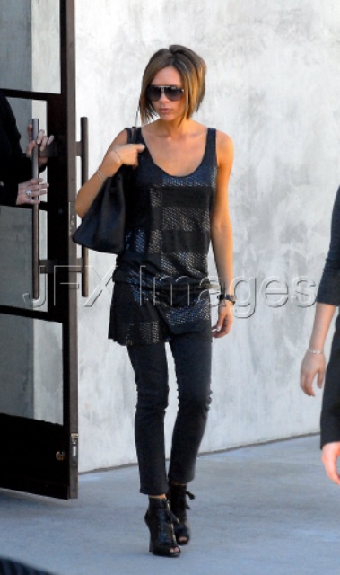 All over the outfit. Covet the outfit. And what of the boots? On me? Absolutely not. On me it’s massage parlour employee, tacky ass gel nails and some whitey loser with an Asian fetish pulling over and offering $500 for the mythical Chinese blow. On Victoria Beckham? Love it. Shopping again in LA, just a day after taking the boys to Disney where they were accosted by pappies and poor little Romeo started crying. Not that I’m saying the pappies are justified in harassing celebrities, but at the same time when you eat at The Ivy and you pose at the airport, when you open the publicity door arbitrarily at your own convenience, at some point you might be rescinding your right to complain about it when the people looking in stick a foot out to keep that door open…you know what I mean? Especially when she chooses to wear THIS to Disneyland. Stilettos at an amusement park??? Much as I worship her… Bitch…please. Ever heard of a disguise?? A wig? How about a – gasp! – sweatwhirt with baggy jeans and some trainers? Because if she really didn’t want to be seen, if she really didn’t want to be noticed, if she really just wanted the kids to have a good time, knowing the albatross of their fame and what comes with it, wouldn’t you think she’d try a little harder to go incognito? Just asking… Source