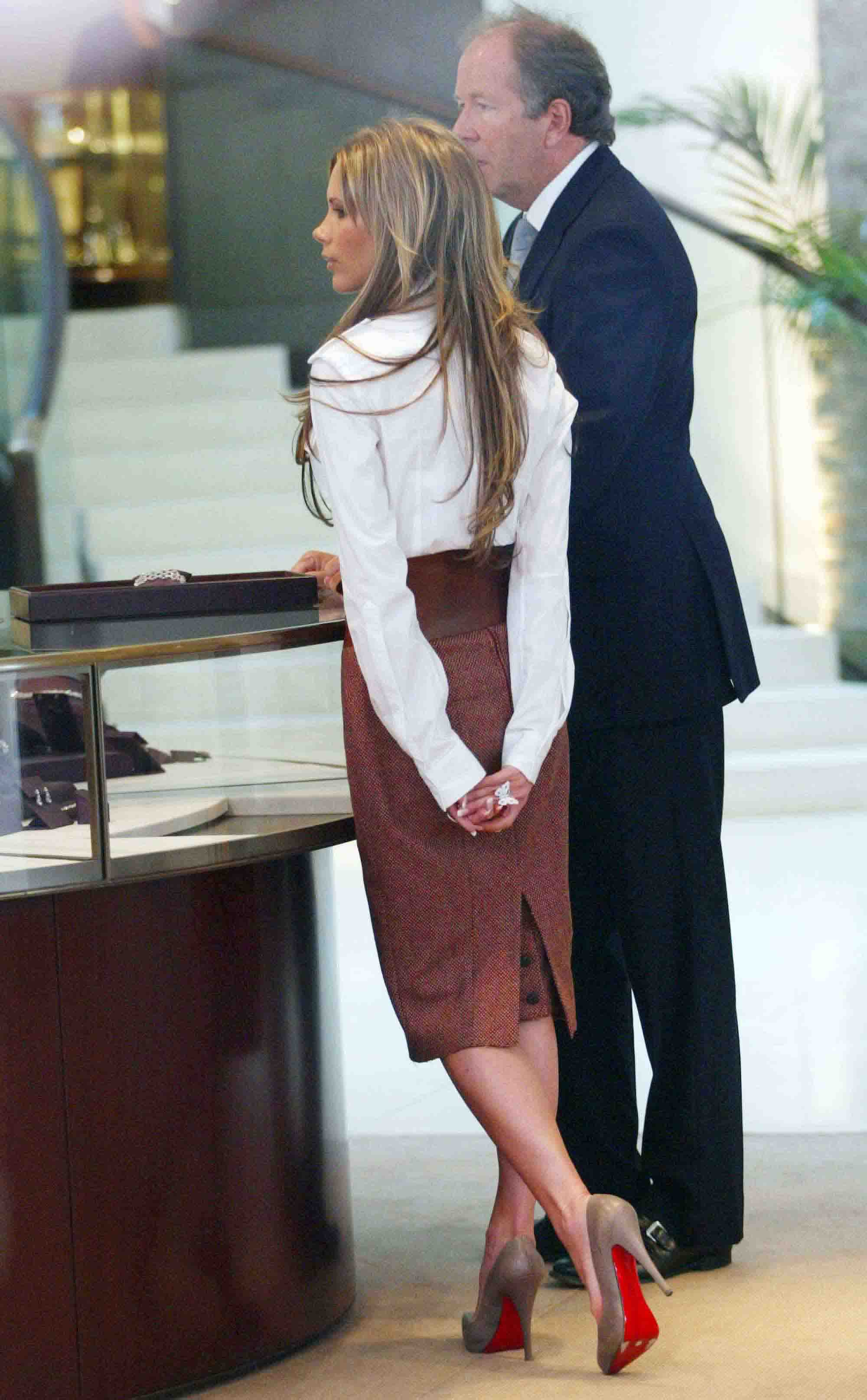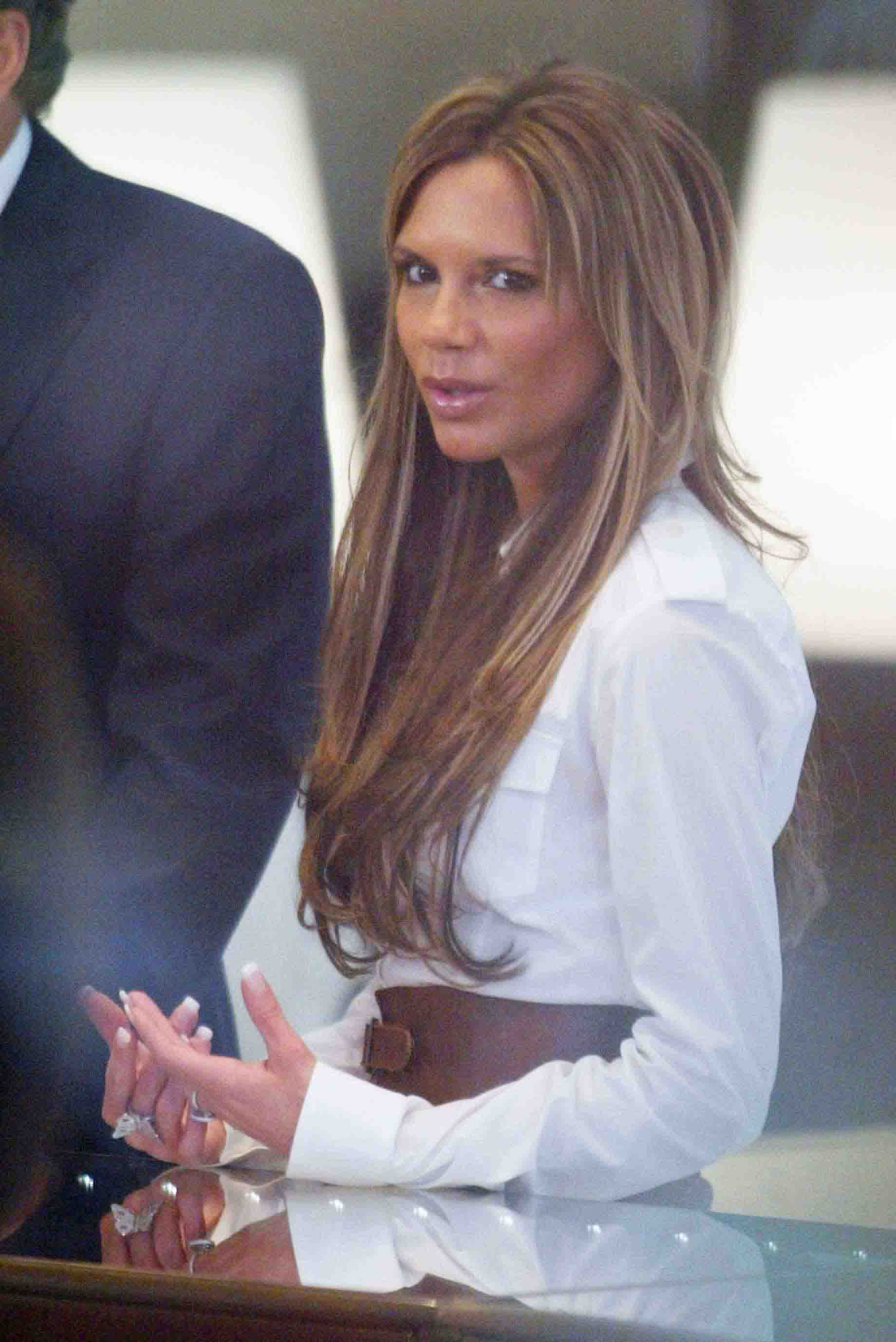 Don’t bother. I know she"s barely breathing. I might be a biased bitch but I"m not a blind biased bitch. But as I"ve said before, I choose to ignore her starving and plastic compulsions. Because you know what? The woman is married to the hottest man on a pitch. Can you imagine how much more bitter we"d be if she floated around with effortless gorgessity and great skin??? Here"s a girl with limited beauty and limited ability who has to STRUGGLE to keep up with her man. It"s a total Hollywood reality check, gossips. So don’t complain. Focus instead on her clothing - Victoria Beckham"s secret weapon. That belt is to die for, the shoes are a standing ovation, and the conservative crisp white shirt unbottoned for a peakaboo bra??? Pure fashion genius, gossips. Oh Vicky - I do love you, girl!
