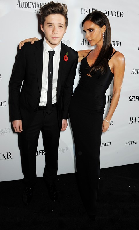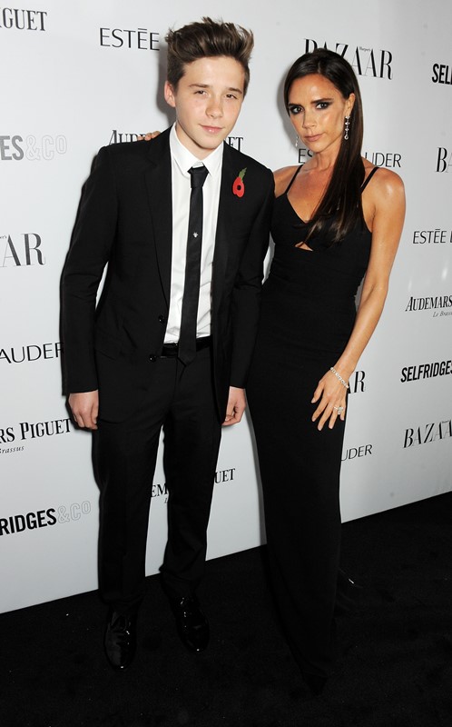 Victoria Beckham was honoured last night in London at the Harper’s Bazaar Women of the Year Awards. Son Brooklyn, 14, was her date. Instead of pose-harding, which is how she normally behaves on a carpet, Posh smiled tenderly and demonstrated her affection for her oldest child.