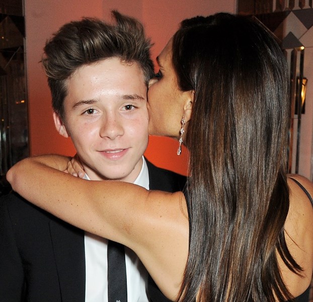 I have a nephew around the same age as Brooklyn. We go to movies together. I’m the old aunt who picks him up after school and pays for the popcorn and he gives me one word answers when I try to get all gossipy about his personal life. Sometimes, when we’re enjoying a great moment, I’ll throw my arm around him and squeeze. And I’m surprised because he doesn’t shirk or shrink or run away. Now I’m tempted to see what he would do if I took him to a premiere and did the same with cameras around. Because look how sweet Brooklyn is with his mother. He’s not all like, “aw, mom, can you please not embarrass me”. He’s not all “I’m too cool to be kissed by my mommy”. Rather, he seems totally proud of his parent and so happy to be with her. Cute, right?