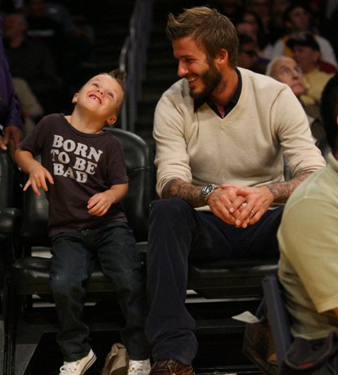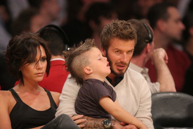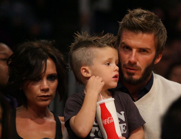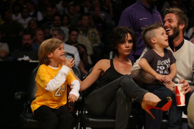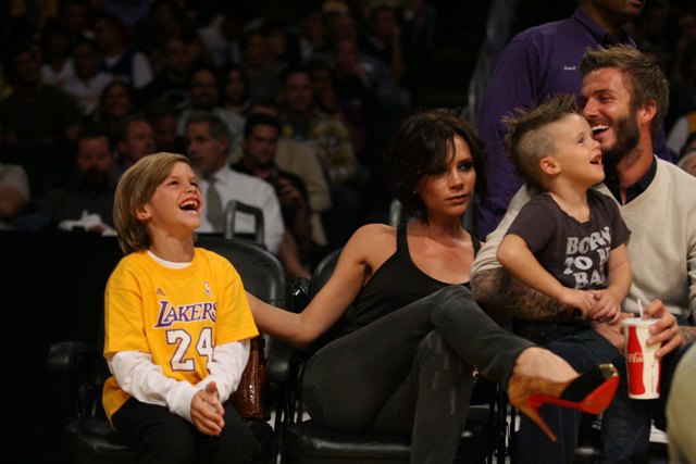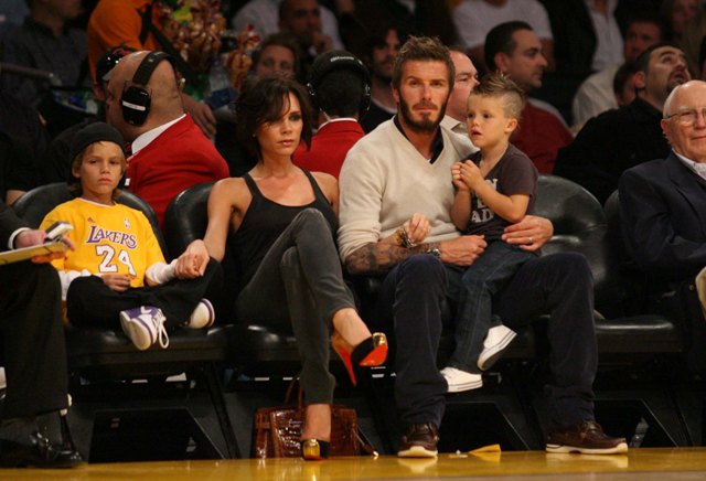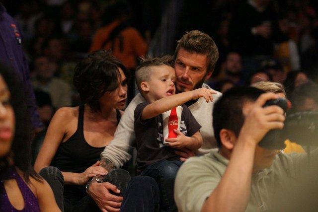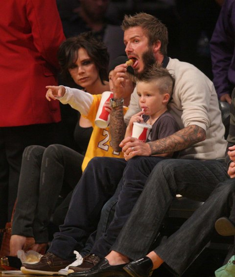 The Beckhams were courtside at the Laker game the other night. As you can see, Posh is trying out some soft waves on her growing bob. Looks good. Really good. She was very pretty that night. Would have been prettier if she’d let herself smile. But of course not. There were too many cameras around.