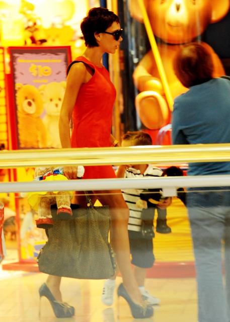 Victoria Beckham took her sons to the Build a Bear Workshop yesterday, totally obliterating her own record for Most Ridiculous Mother Outfit ….