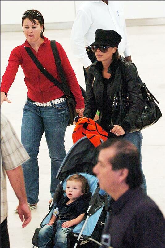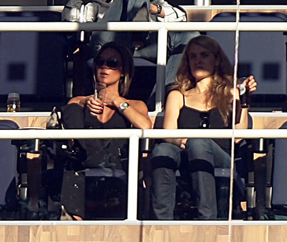 Damn. Every kid is cuter than the one before - the Beckhams are a great example of my Celebrity Baby Theory, non? And just to clarify: David Hot, Victoria Average. No... much as I love her, I won"t go so far as to say she"s a great beauty. Besides - Victoria is better than a great beauty. Victoria is a great package. Packages are earned, beauties are just blessed. You see the difference? I do wish she"d get rid of those concrete tits though. Is minger applicable in this situation? So anyway, about the book - That Extra Half An Inch: Hair, Heels, and Everything in Between is Victoria"s personal style guide due out in October. Check out a very small photo of the cover, thanks to the lovely Julia for sending it along. Word is UK smutters are eagerly anticipating its release, not because they"re foaming at the mouth to read her pearls of fashion wisdom but because her travel schedule in support of the book could take her away from David for longer than they"ve been apart in quite a while. Naturally, the British tabloids are all over this and I"m sure I don"t have to spell out why. Still…for what it"s worth…I"m continuing to hear from my sources overseas that David is as devoted to his wife as he"s ever been, and that as long as he can stay "unbored", the line will likely be walked. Optimistic? Delusional? Wishful thinking? Yes, yes, yes. But we all get to choose our fantasies, don"t we? Call me Cruise, but this one"s mine. Here"s my girl with Cruz traveling back to Madrid for the opening against Villareal. Also one of her in black at the match, and an exlusive sent in from fan who had the chance to meet her there. He said she was strong>"really nice and took time to talk a little and take pictures! She was plastic perfection!" Well of course she was, darling. Who else does plastic perfect better than Posh?