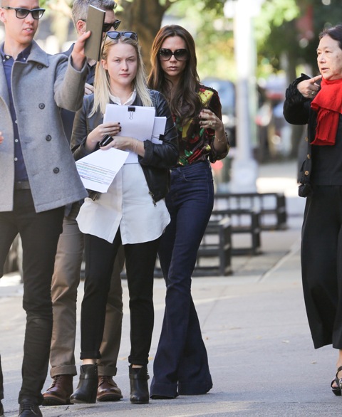 Also attached - Victoria Beckham can’t stop touching her extensions in New York today