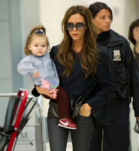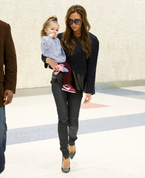 My ma used to style my hair like this too. Most girls, right? Except not with a navy bow that’s perfectly positioned and probably costs $250. Of course H7 has trainers in the season’s hottest colour too. I really love how H7’s mother can hold her while walking through an airport in heels and take her hand in and out of her pocket to offer photographers a variety of poses in motion. It’s quite a skill, and I imagine they must practise at home together. But God she is cute, isn’t she? Like a perfect halfway cross between her brothers Romeo and Cruz.