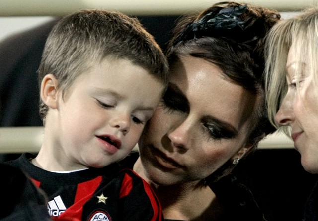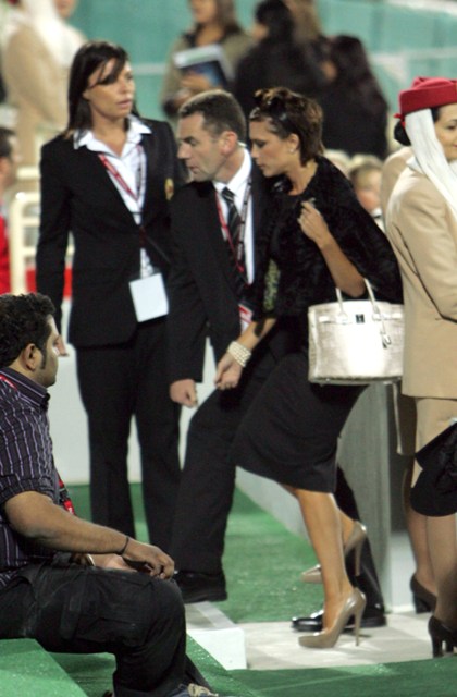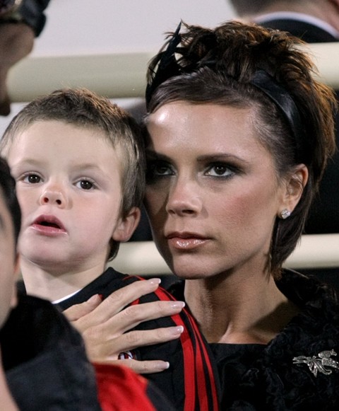 The entire family was there to cheer him on – all 3 Beckham boys dressed like dad. Adorable. And of course Victoria, in a killer ensemble she’s probably planned for weeks, with the requisite sky high heels, am loving how she’s wearing her hair, and a brand new silver crocodile bag. Looks like Hermes. Again. Another. Coveted by fashion girls everywhere…