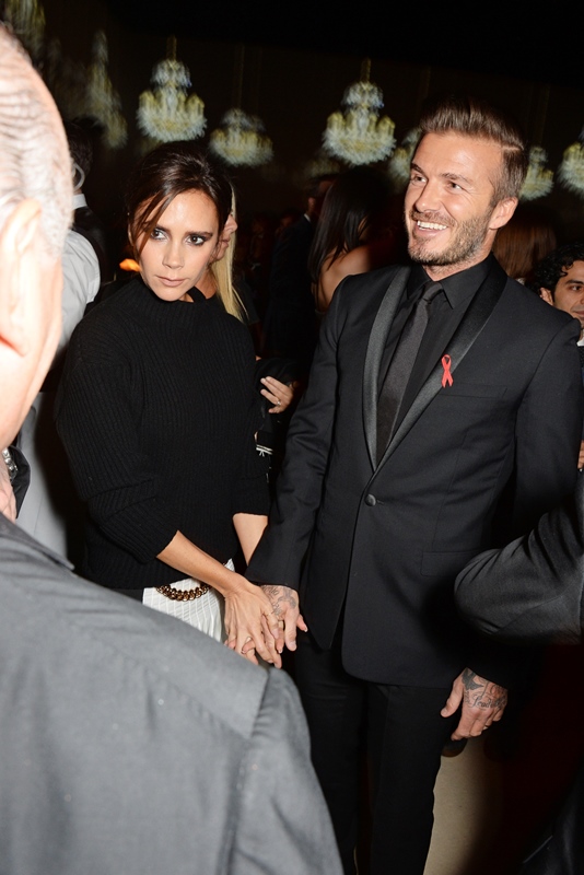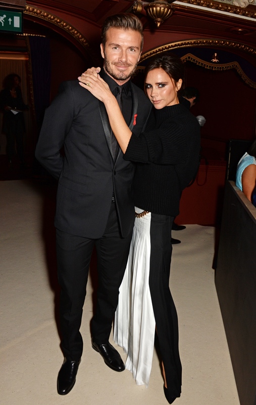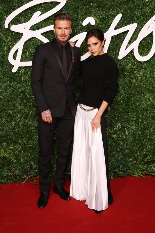 Here are the Beckhams tonight at the British Fashion Awards. The back half of her skirt is black. You into that?