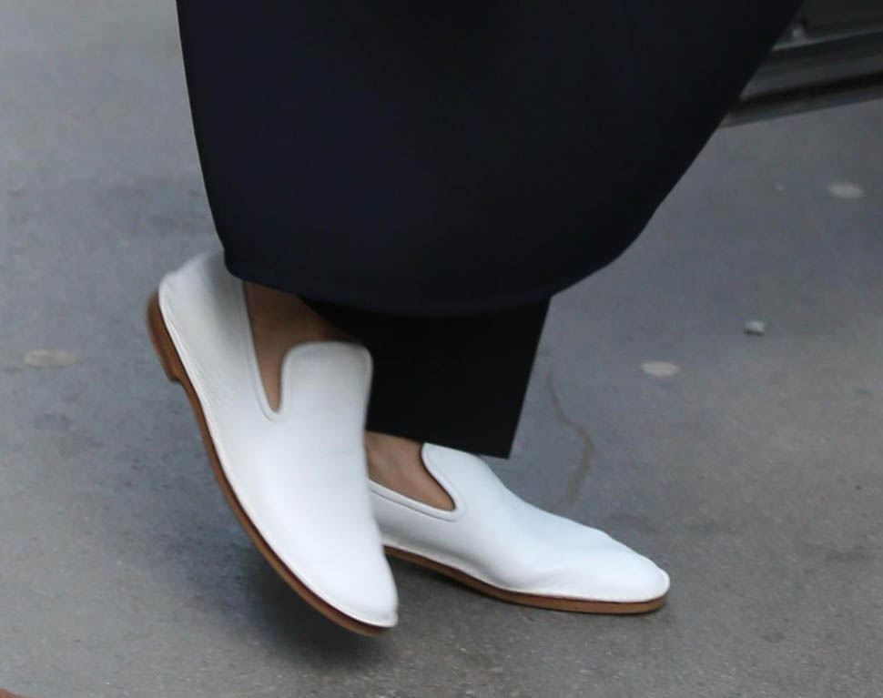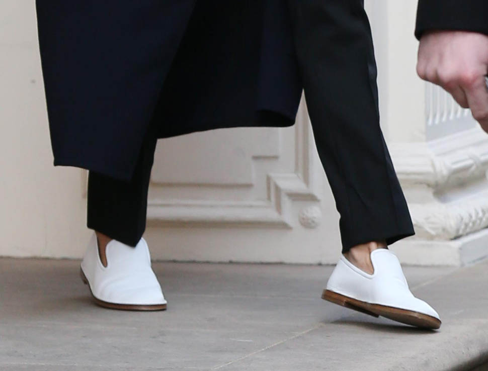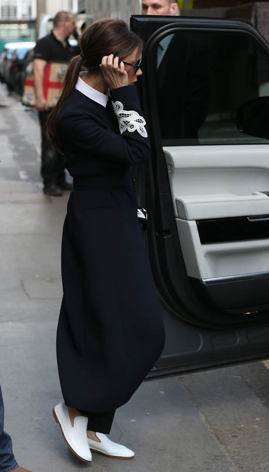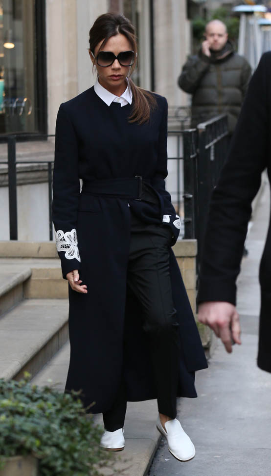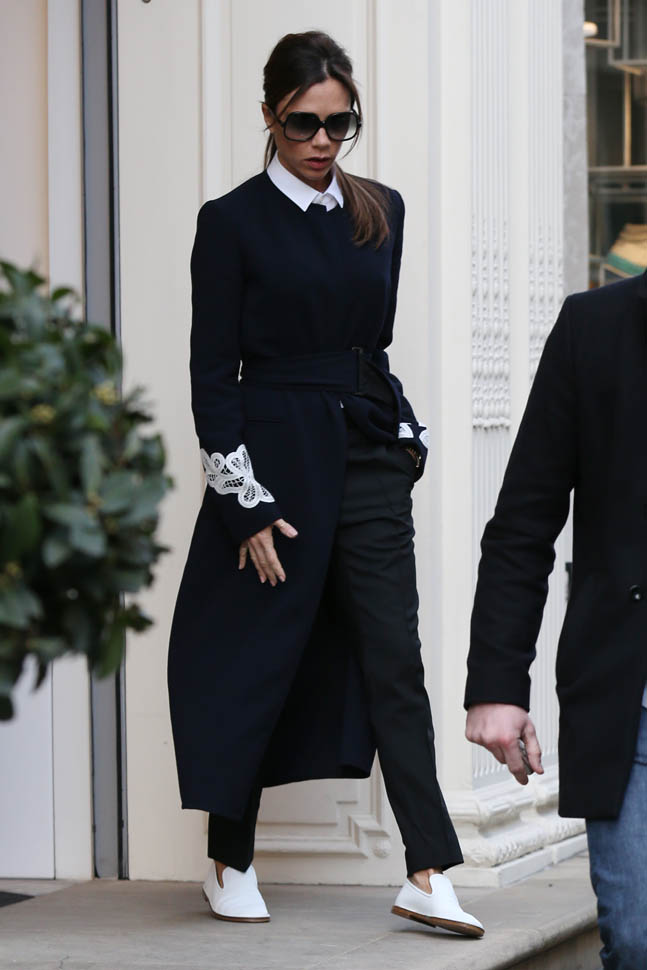 So we have entered the era of Posh in flats. And I have never loved her more. Look at this outfit. White collar. Gorgeous jacket. Beautifully tailored pants. And f-ck me these white kicks. These dope ass white kicks. This might be my all-time favourite, ALL TIME FAVOURITE, outfit on her, like, ever, ever, ever.