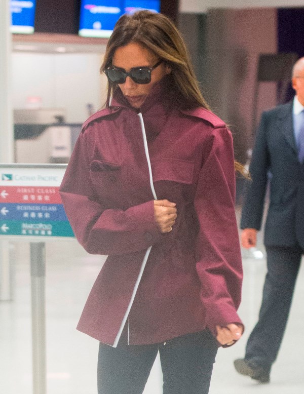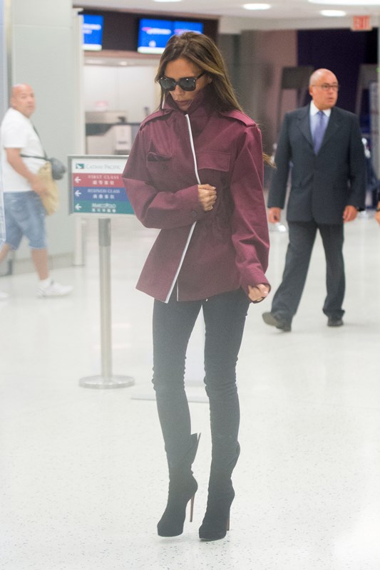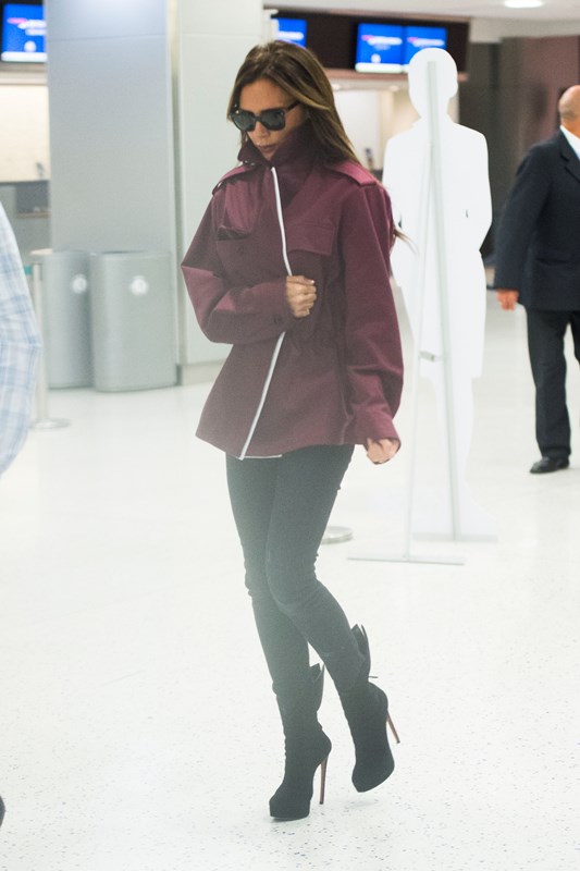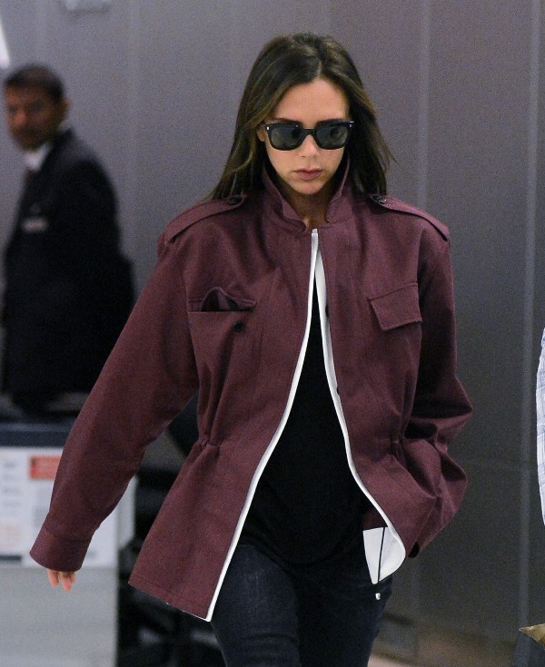 The shoes are from her own collection. She’s doing shoes now. She presented at NY Fashion Week the other day and reviews, again, were quite positive. I can understand why if this jacket is part of it. She was wearing it through the airport yesterday. Will I ever get over the fact that it bites my ass to say good things about her “designing”?