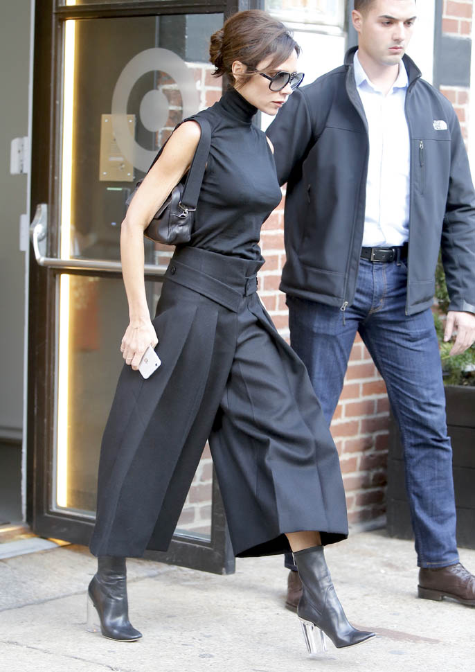 Carpets & Candids: Posh’s wide black pants