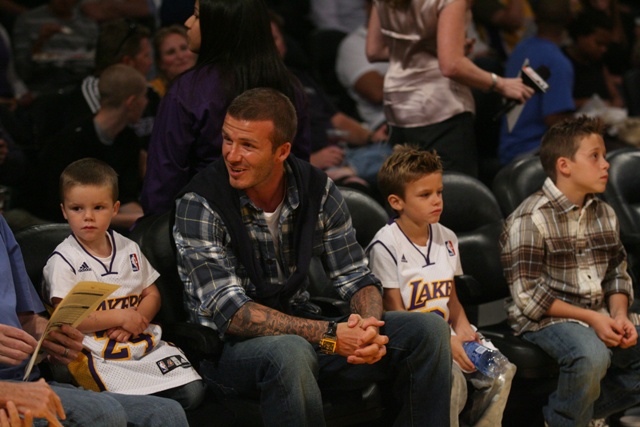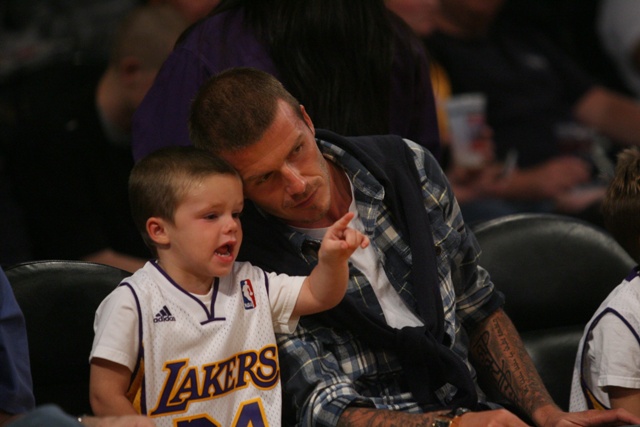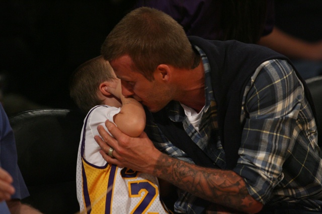 Seriously. Those boys are gorgeous. And Becks on daddy duty is a quivering beast! Check out the one of him kissing Cruz’s arm. And the shot of his hand on the back Cruz’s head while he’s clutching one of those plastic clappers.