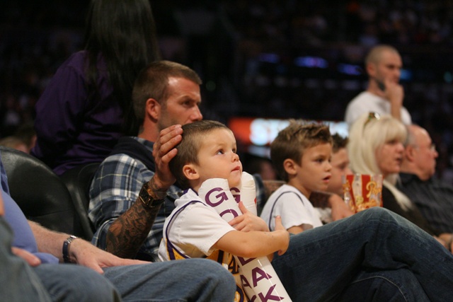 Then it was off to the Laker game, courtside with his dad and brothers.