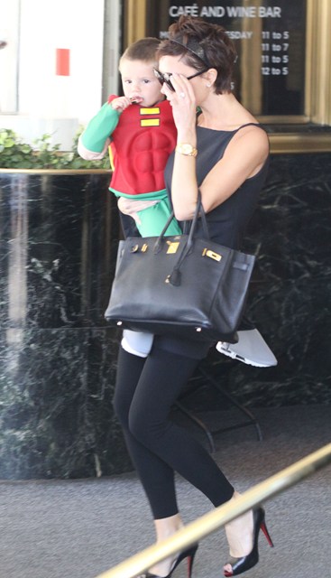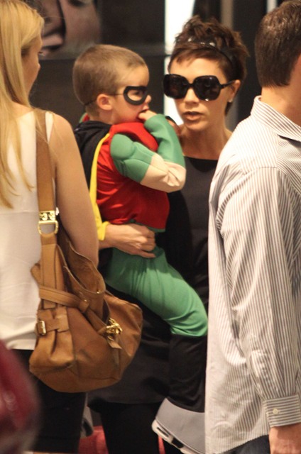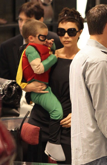 Victoria Beckham took her youngest son Cruz to the Saks on Friday because he like really, really wanted to go shopping in his little Robin costume. Don’t all 3 year old boys? He likes it when mummy buys new shoes, see?