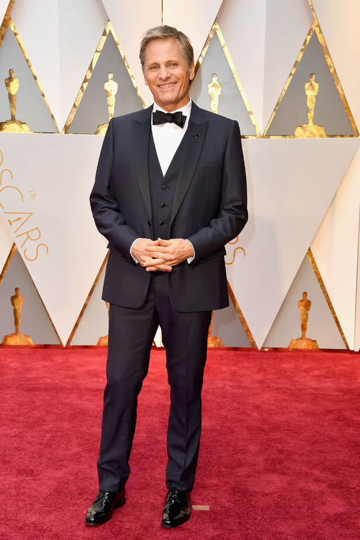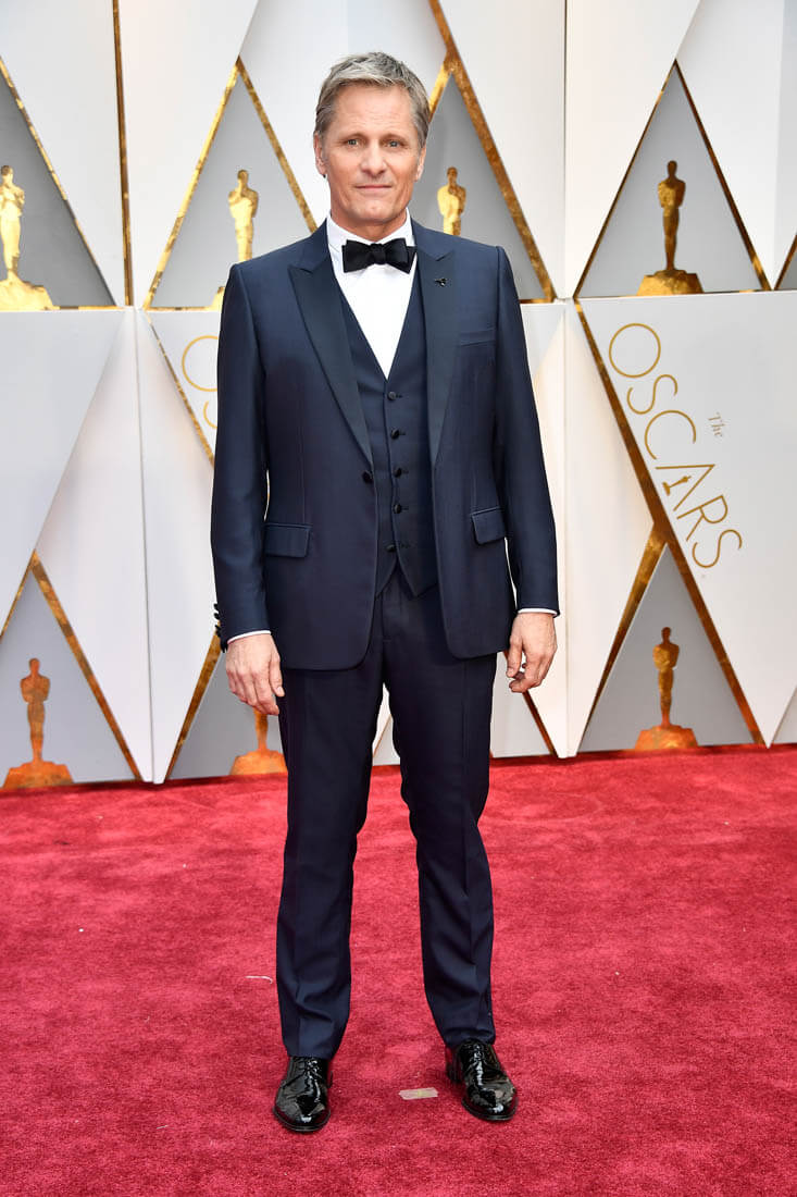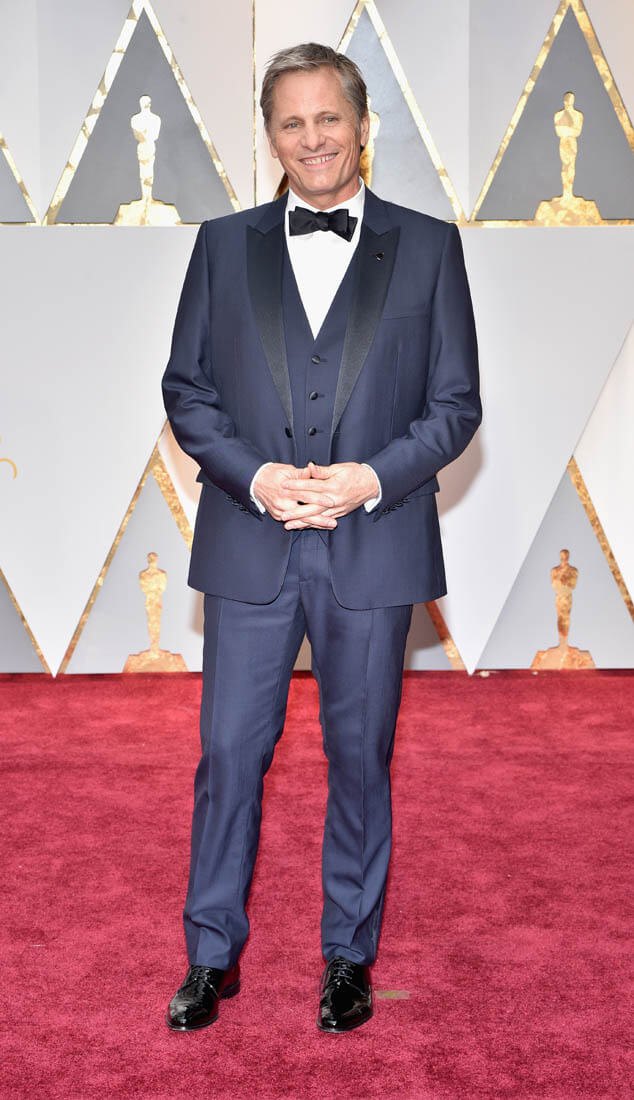 One question, though. Are we calling his tux blue? On my computer and TV it read both blue and black, depending on the angle and light. Is this black or very very very dark blue? If it is blue, I’m going to have to redo my Blue Tux Walk Off. PS: Mortensen’s tux is Dior. Not too long ago, it was rare to get an ID on a dude’s suit, but lately they’ve been good about providing them for tuxedos. Equality!