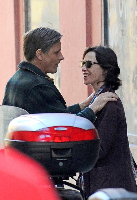 Ok so first, check out Viggo Mortensen in Spain the other day, holding hands and embracing Ariadna Gil. They met on the 2006 movie Alatriste. She was married at the time, has a child, and according to some Spanish gossips, left her husband after falling in desperate love with Viggo, and they’ve been together ever since. This is how some believe she secured her part in his film Appaloosa.