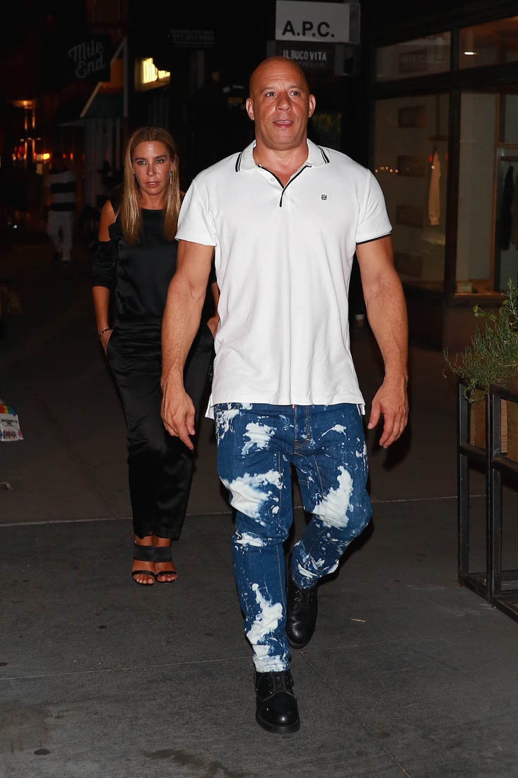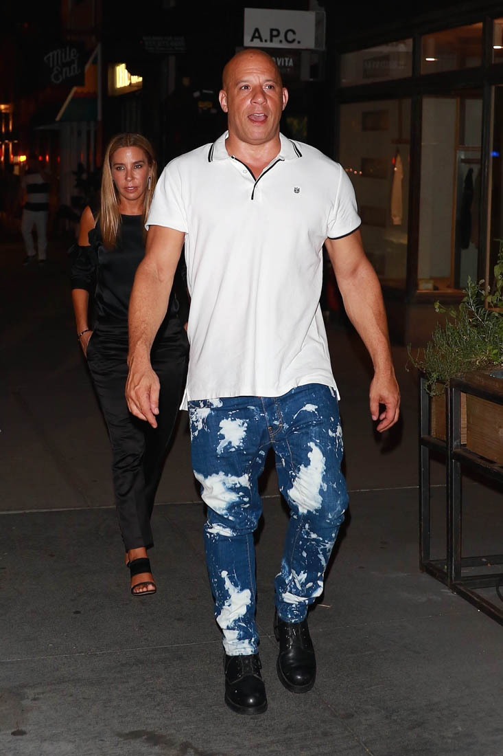 Here’s Vin in New York last night trying to pull off a really ugly pair of jeans. I don’t think he passed.
